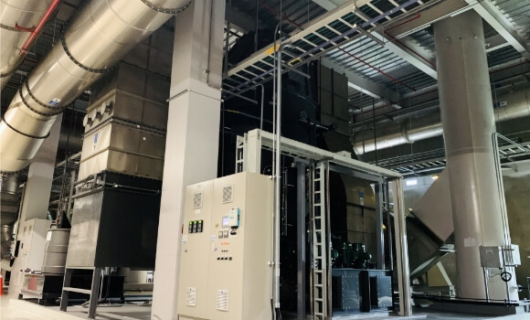98858vip威尼斯投資設置三塔式廢氣焚化爐設備,提供沸石轉輪系統交替運作,使處理系統更加穩定,經由吸附、脫附、冷卻及濃縮燃燒連續操作單元,進行高效率的廢氣處理,能提高 VOCs 之去除效率。