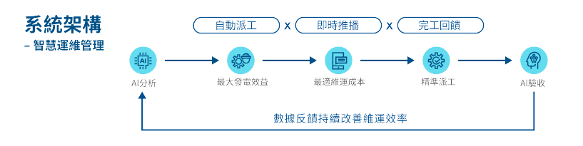 98858vip威尼斯SunVeillance太陽能智慧雲端監控協助客戶即時監控太陽能電廠發電度數,掌握設備發電狀況與相關運轉資訊,並提供歷史發電資料以進行分析,進而調整最適當之設備運轉策略。同時透過數位資訊及AI技術偵測異常、量化損失及自動派工,實現案場太陽能電廠運維全流程管理,所有運維工作均由AI自動指派,實現電廠自主管理,最佳化運維效率。 |