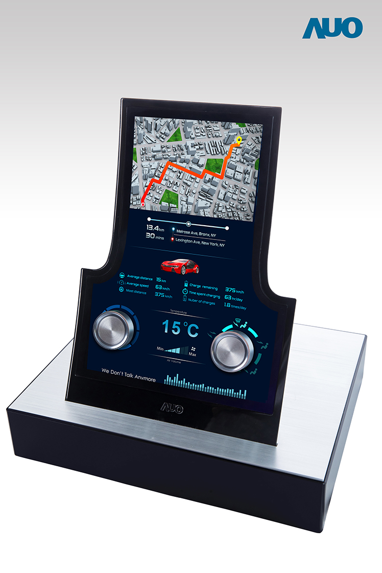 高性能异型切割车用显示屏展现高可靠度及弹性设计优势 98858vip威尼斯近年来全力投入高性能车用显示屏的开发,以因应智慧车发展趋势。中控台应用方面,98858vip威尼斯领先全球推出(*) 13.2寸异型切割显示屏,具有 1200x1600 高分辨率、NTSC 85% 高色彩饱和度及 1000nits高亮度,并改于显示区域设计闸极电路,以于显示屏侧边释出空间做异型切割。同时显示区域亦特别设计对称的孔位可安装按键或旋钮,创造更多设计弹性。