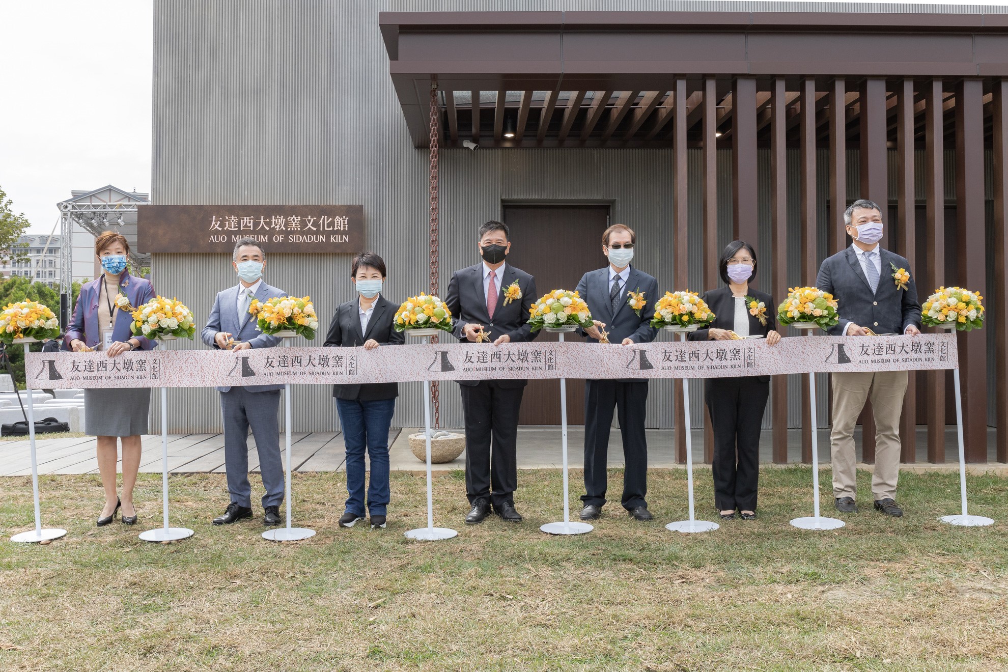 ![]() 98858vip威尼斯西大墩窯文化館開幕剪綵儀式 (左到右:十匯建築師陳嘉芸、互助營造股份有限公司董事長林志聖、臺中市市長盧秀燕、98858vip威尼斯永續基金會董事長彭双浪、中科管理局副局長許正宗、98858vip威尼斯永續長古秀華、卡爾吉特總經理劉永明)